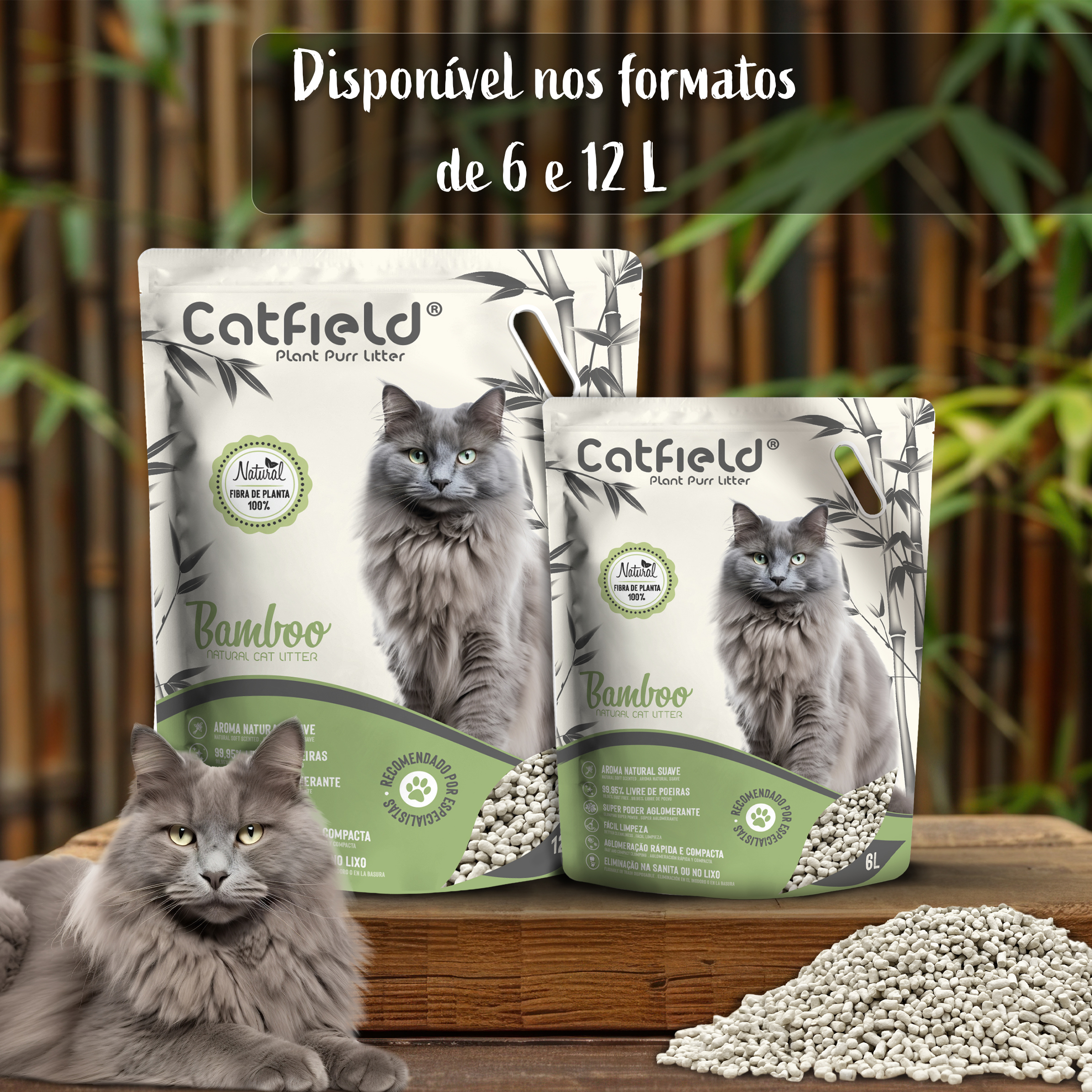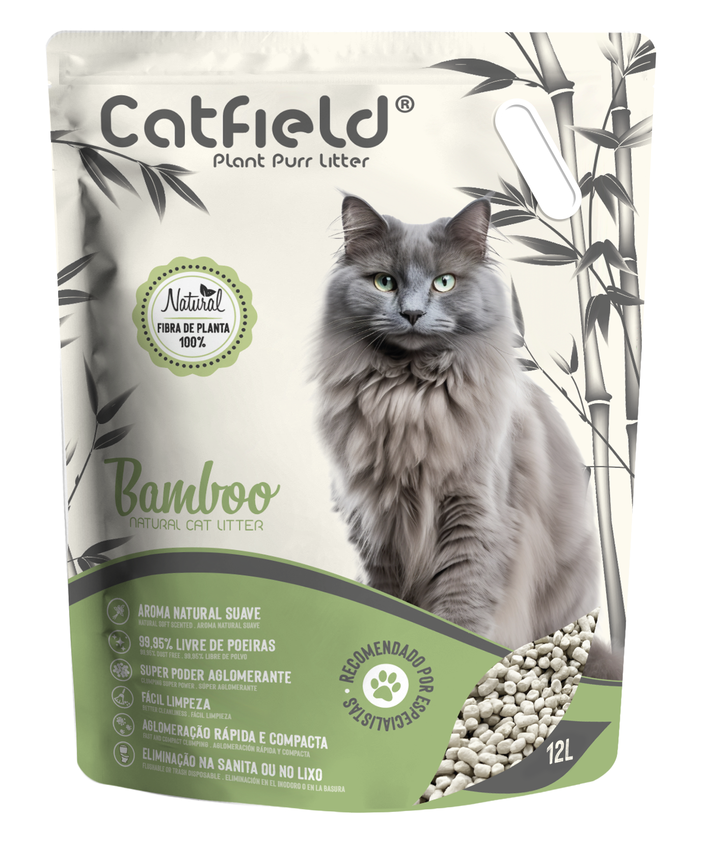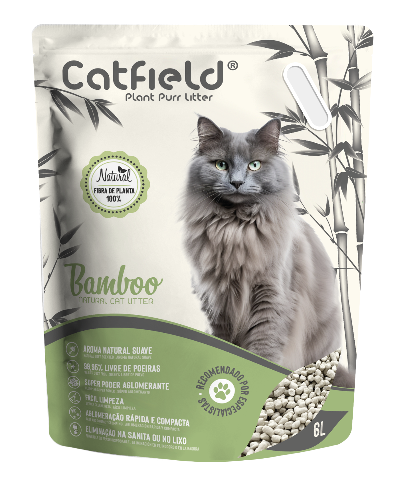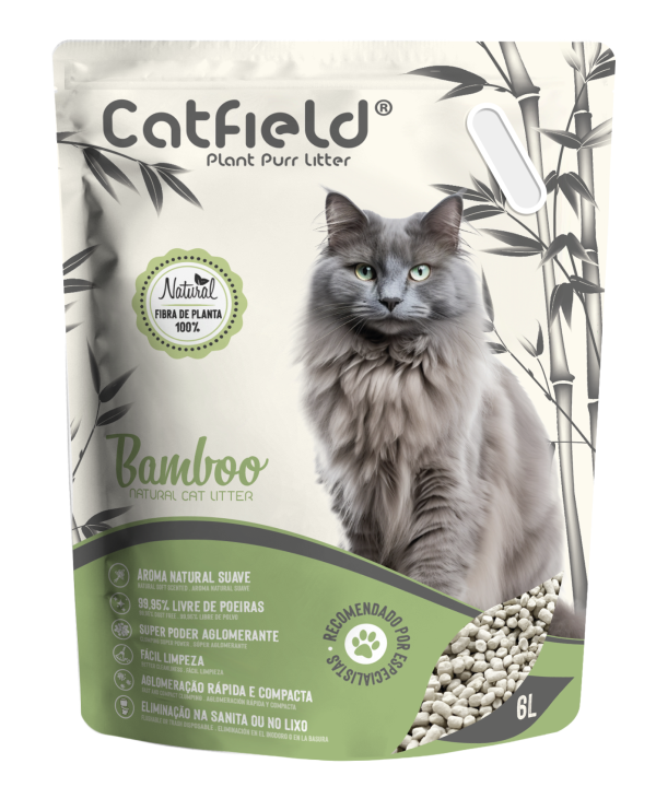 Catfield® Plant Pure Litter é natural, eficaz e amiga do ambiente. Produzida a partir de fibras vegetais como bambu e bagaço, este é um produto 100% natural, biodegradável e seguro para o seu gato. É altamente absorvente, forma aglomerados firmes que neutralizam os odores e facilitam a limpeza diária. Praticamente sem poeiras (99,95%) e sem químicos, é suave para as patas dos gatos e não se cola ao pelo.
