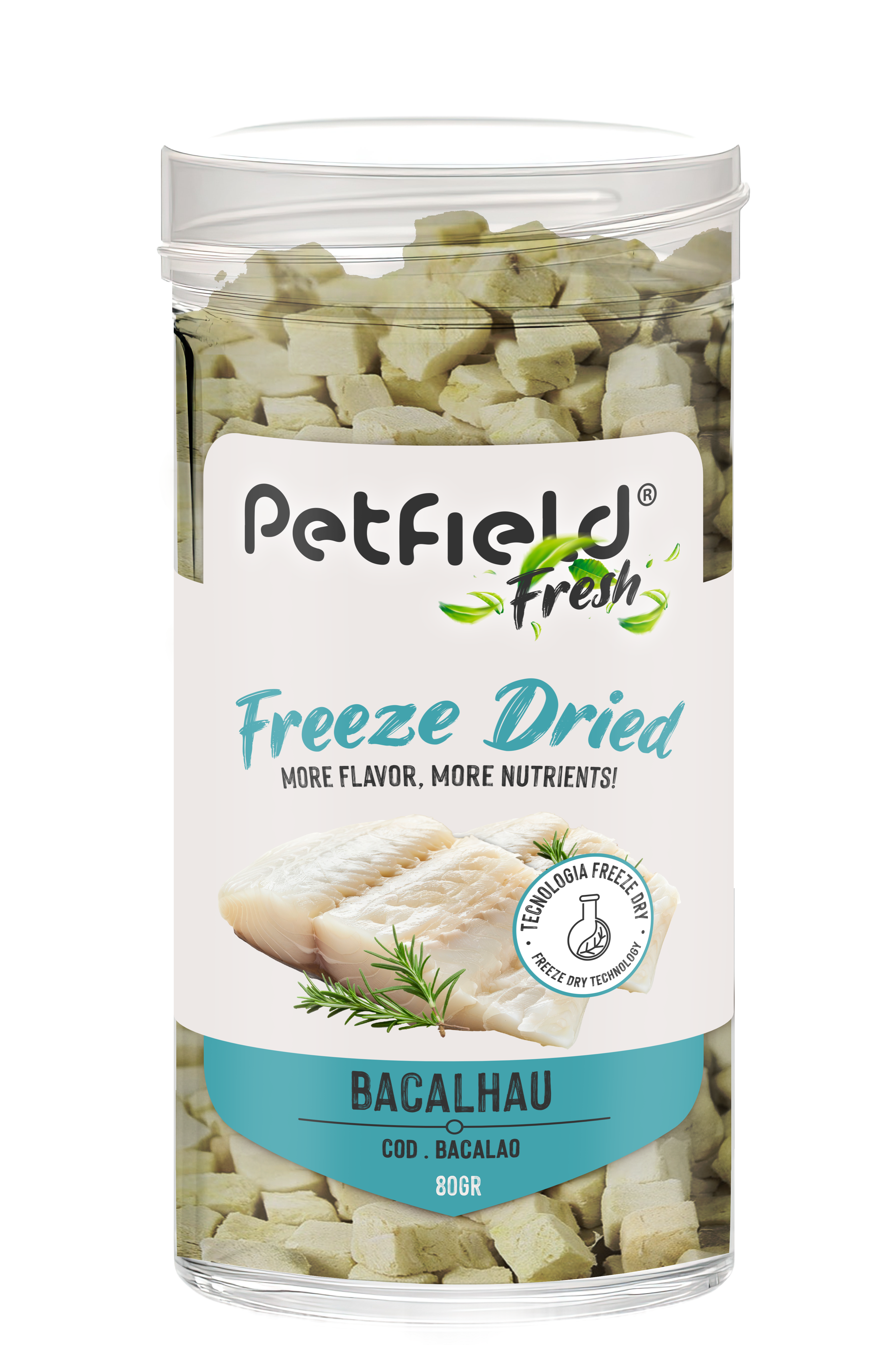 Os snacks Petfield Fresh Freeze Dried Cod são cozinhados a partir do bacalhau fresco, utilizando a inovadora tecnologia de desidratação a frio. Este processo preserva todos os nutrientes essenciais sem necessidade de conservantes ou aditivos artificiais, garantindo uma recompensa nutritiva, saudável e irresistível para o seu animal de estimação. Benéfico para os seus animais, com uma nutrição completa, graças à preservação de vitaminas, minerais e proteínas essenciais; O seu sabor e textura são autênticos; é um alimento de fácil digestão, mesmo para os estômagos mais sensíveis e é 100% natural, sem químicos. É um snack de qualidade Premium, muito prático, duradouro, leve, fácil de armazenar e com uma validade longa. Para além de delicioso e saudável, é ótimo para o trato urinário. Disponível em diferentes sabores de carne e peixe de elevada qualidade para agradar até aos paladares mais exigentes.